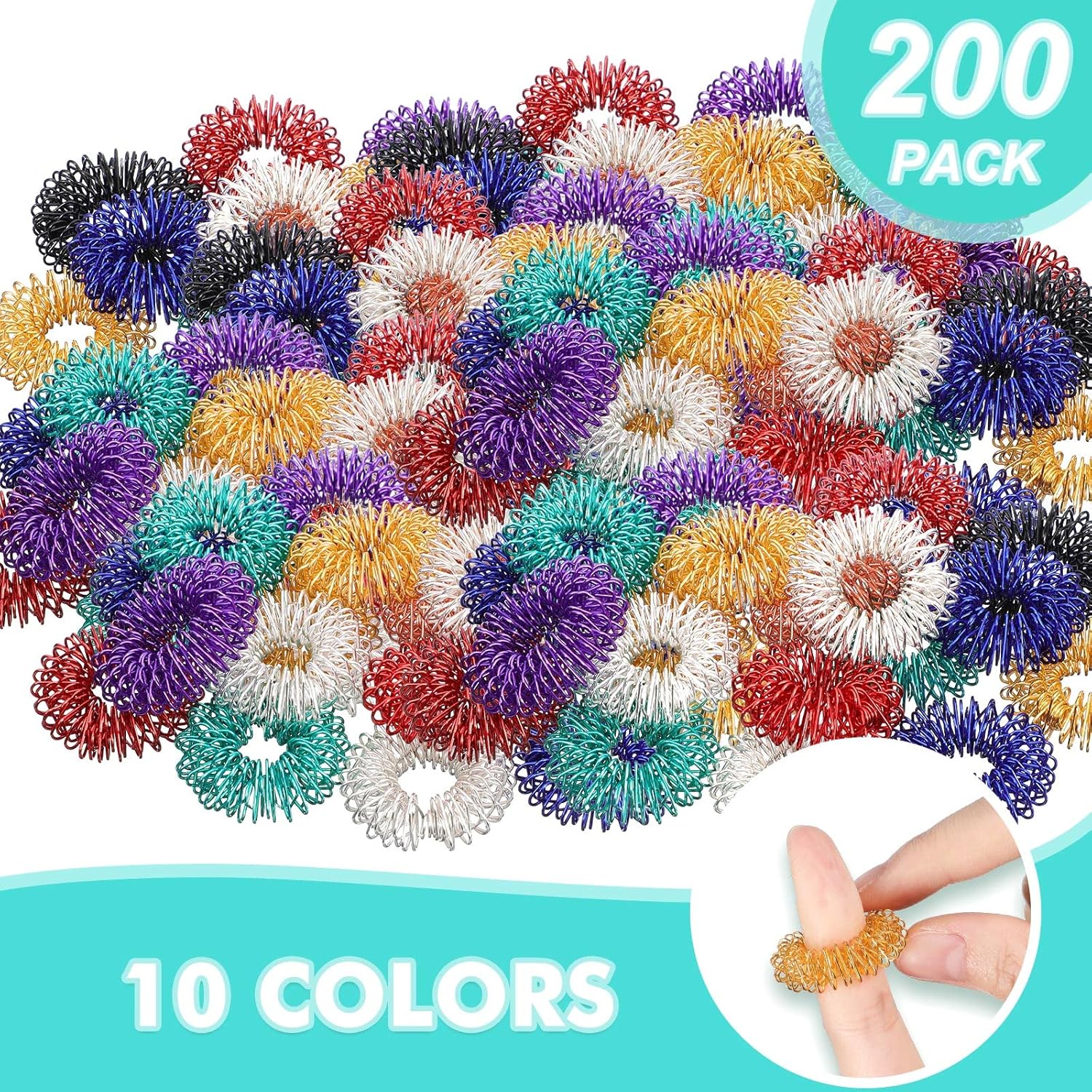 200 Pcs Acupressure Rings Fidget Spiky Sensory Finger Massager Ring Stress Relief Fidget Sensory Toys Anxiety Relief Toys Stress Reducer for Men, Women(Classic Color)