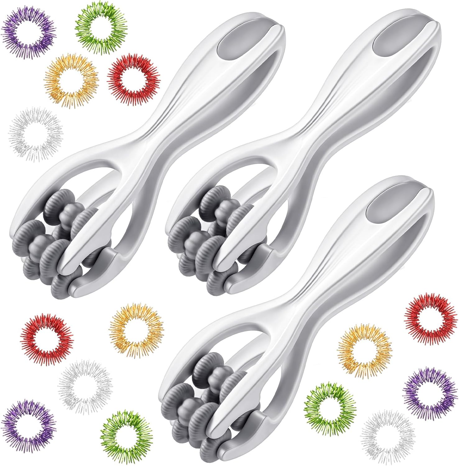 - Finger Massage Tools: you will get 3 pcs finger massagers, and 15 pcs finger massage rings with pressure; To help you relieve the discomfort, pain and stiffness caused by long hours of work, which can improve finger mobility, flexibility and blood circulation